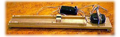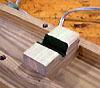 I made guide rails that are approximately 3/4" square and nearly the length of the working base. If you do not have access to a table saw to make the rails, some square trim found at most lumber stores will work ( angle iron or aluminum will also work). These rails contain the sliding block that supports the arrow shaft. This sliding block can be moved from end to end to account for shafts that may not be true. The sliding block has a "v" cut into it to hold the shaft. I used a table saw to cut the v but a hand saw or file should do the same job. The "v" was then lined with felt. Felt "v" blocks can also be purchased from some traditional equipment suppliers. One fellow archer recommended using a small cloth bag filled with lead shot to hold the arrow down in the "v" block. Although I have yet to try this myself I think this would be an asset as you would then have two hands free to do the cresting, make adjustments, etc.