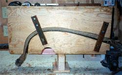 The first step in making a recurve is to construct a form. The form pictured is made form laminated plywood, but other materials such as redwood 2 x 10's and gluelams, have been used successfully. Gluelams are a laminated product used mostly as floor joices or structural beams in building construction.